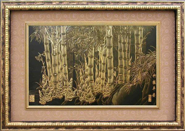 另一種方法,就是先在宣紙上印好,等油墨完全干后,再涂糨糊用銅版機粘在一張版畫紙上。還可直接把宣紙放在版面上,用自噴膠粘貼。宣紙托裱法可依個人或畫面的需要選擇不同顏色的宣紙,其效果各異。
