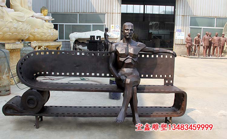 具象場(chǎng)景:塑造導(dǎo)演手持膠片、觀眾伸手觸碰膠片等場(chǎng)景,比如銅雕《觀影者》——一個(gè)人物仰頭凝視懸浮的膠片帶,膠片上刻滿經(jīng)典臺(tái)詞。