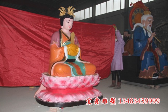 我公司所作精品女媧娘娘神像,盤腿坐于蓮花臺(tái)之上,體型高大,造型自然流暢,做工精細(xì),工藝精美,整體古樸典雅,法相端莊,面部慈祥,佛音裊裊,實(shí)屬藝術(shù)精品。如有需求,歡迎來唐縣宜鑫雕塑!