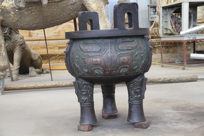 銅鼎是從陶制的三足鼎演變而來的,最初用來烹煮食物,后主要用于祭祀和宴享,是商周時(shí)期最重要的禮器之一。鼎,古代原是飪食器,后來變?yōu)榻y(tǒng)治階級(jí)政治權(quán)利的重要象征,視為鎮(zhèn)國(guó)之寶和傳國(guó)之寶,也是“明貴賤,別上下”等級(jí)制的標(biāo)志。