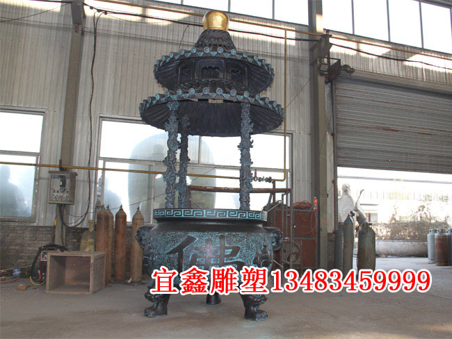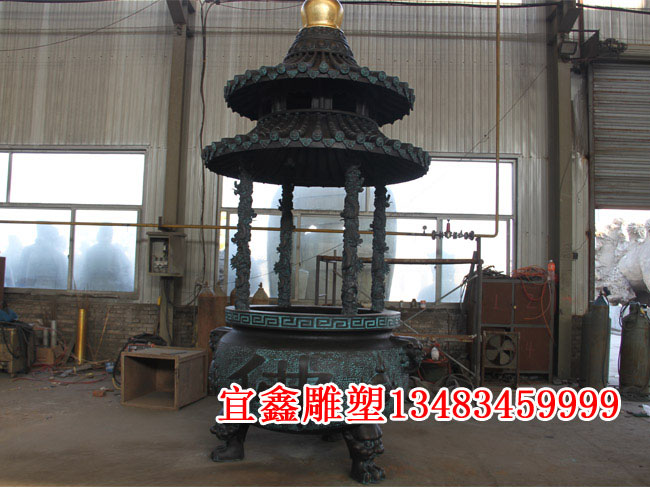 銅香爐是銅做的焚香器具,多放于寺廟焚香之用,是歷史悠久的漢族傳統(tǒng)工藝品,這尊銅香爐是為江西獅子山洪恩寺定制,高3.9米。銅香爐雖然材質(zhì)相同但是不同時代的能工巧匠們卻把他們做成了作成不同的樣式。銅香爐用途亦有多種﹐有熏衣銅香爐﹑或陳設(shè)銅香爐﹑或敬神供佛銅香爐。